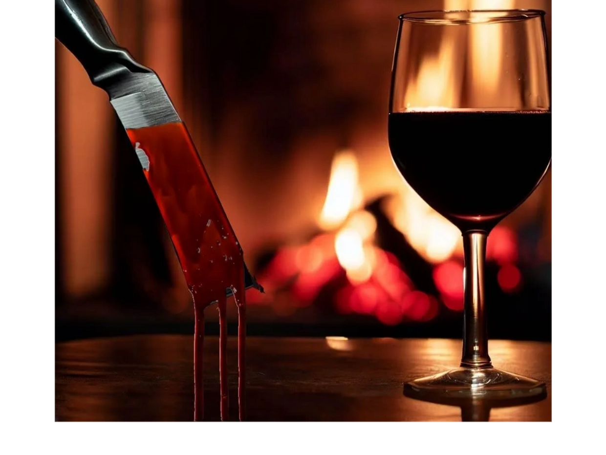 “Anyone scared?” Charlotte licked Eliza’s blood from the razor. “Enough storytelling, now it’s time for some performance art!” And like the maestro of a gruesome orchestra, she raised her arms to introduce her crescendo. Smiling and swinging in a wide arc, she danced around the table. The twirling blade glinted in the firelight like a blood-spattered flash of lightning—slashing left—then right—then left again. The crackling fire and storm outside fused with Charlotte’s snickers and the screeching static of the radio in a grim cacophony of death. She paused, “by the way, I call this one, be still.”